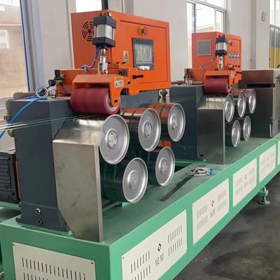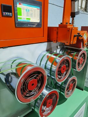 Cette machine est conçue pour créer des sangles en PET à partir de copeaux de PET. La matière première est introduite dans la machine, où elle est fondue et extrudée en une sangle.La sangle est ensuite refroidie et enroulée sur une bobine pour une utilisation dans diverses applications.